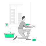 نقوم بتنظيف الموقع بالكامل بمجرد الانتهاء وإزالة جميع الأغطية والمواد المستخدمة أثناء العمل.