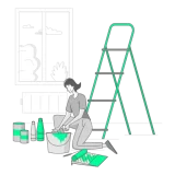 نقوم بتنظيف الجدران من الأتربة والشوائب، وإزالة الطلاء القديم إذا لزم الأمر.